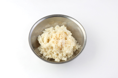 1) In rice cooked over small amount of water, add salt and sesame oil. Mix well and let it cool down for a while.