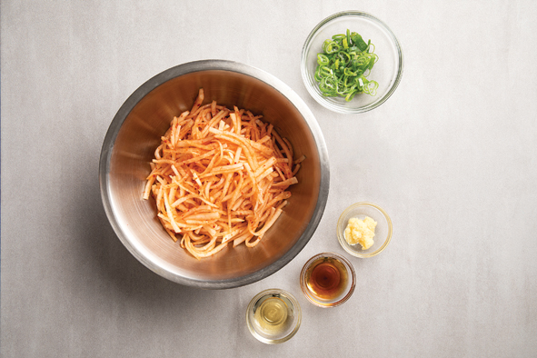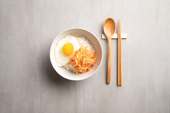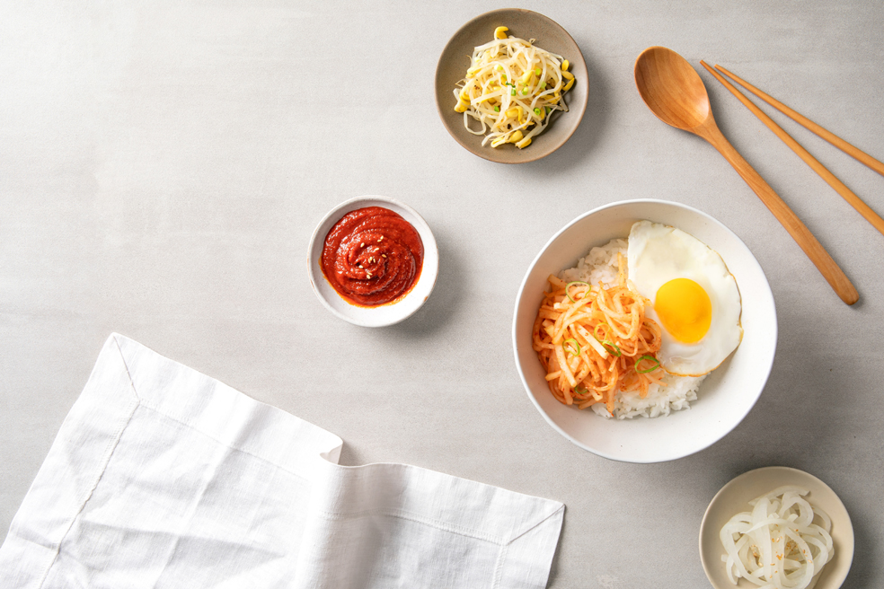 In Korea, Bibimbap is the “go to” menu when one has no appetite. This is because you can have a square meal by simply mixing the rice with side dishes and Gochujang (Hot Pepper Paste). There are various types of Korean Bibimbap, but the one with the simplest recipe is made with Musaengchae, julienne Korean radish Salad ingredients. Both the recipe and the ingredient are simple. You only need to prepare radish, chili powder, sugar, vinegar and garlic. We introduce you the recipe to make Musaengchae Bibimbap that even a beginner in Korean food can master with 20 minutes of time.
