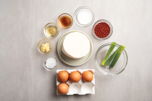 Main Ingredient (4 servings): 400 g of radish, 1/2 green onion, 4 eggs