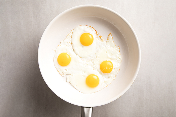 7. Garnish the dish with fried eggs on top of rice and sliced radish and the dish is complete.